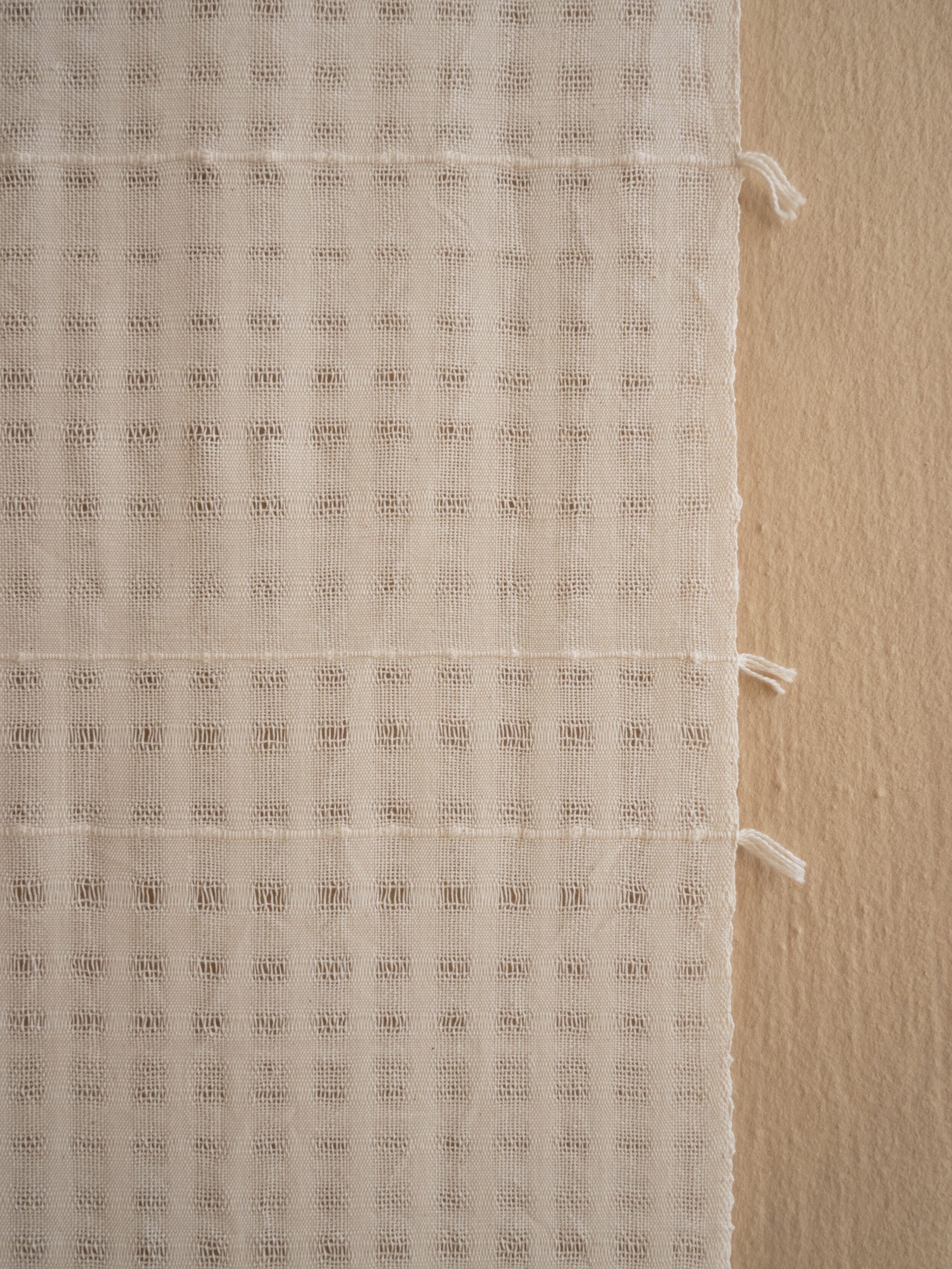 Handwoven in Cape Town using locally sourced natural fibers, Chiaro blends traditional craftsmanship with modern design. Its rich texture and subtle harmony create a sense of stillness, making it a striking yet calming addition to any space. Finished with brass mounting bars for a refined touch.