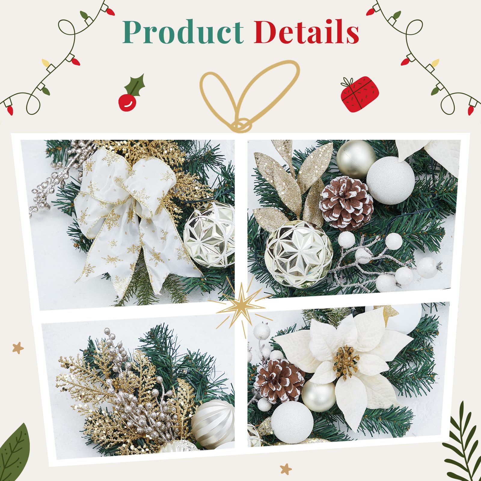 - Detailed Holiday Decor: The combination of champagne flowers, gold and white accents and decorative elements adds a touch of elegance to your Christmas décor. Perfect for indoor and outdoor use, this artificial garland is an essential decoration for creating a merry and bright holiday atmosphere.