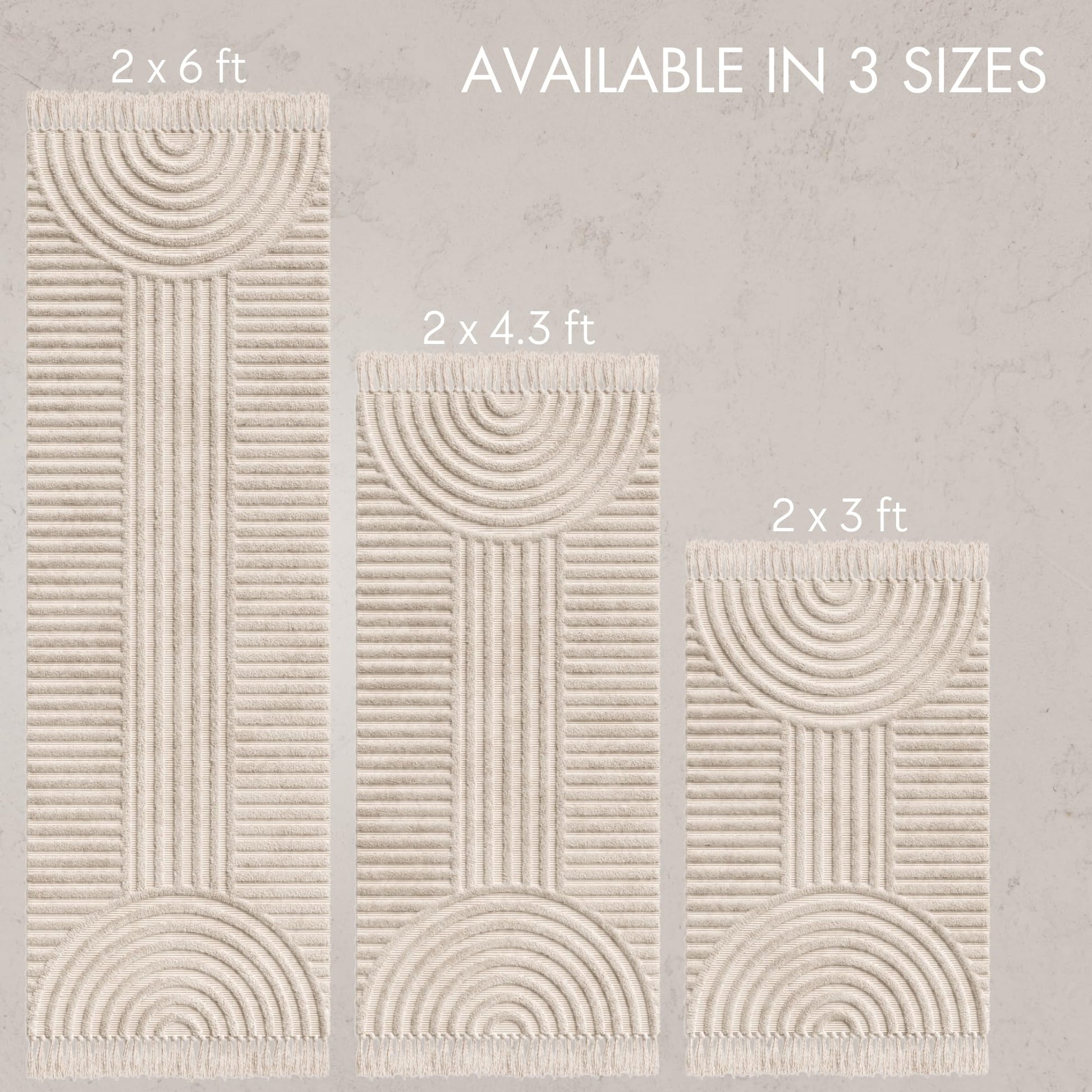 Details: Beautiful Boho Rug By KIBAGA: Transform your home into a charming bohemian oasis! Let your home decor take on that special, laid back boho feel while experiencing the comfort (and luxury) of stepping onto a soft runner rug every time you enter your bathroom, bedroom or any other area in your home where you want to spruce up your decor. Infuse your home with the enchanting boho bathroom decor mat that is adorned with playful tassels and stylish patterns. Whether staged as boho rugs for your living room, boho kitchen rug, as a bathroom or nursery rug, or boho rugs fro bedroom the neutral cream color effortlessly blends with any decor, creating a modern and versatile look with a charming boho flair. Tailored to perfection and with the aim of offering you full flexibility, you can choose from three different sizes: 2x3 ft, 2x4.3 ft or 2x6 ft. Each rug features an anti-slip bottom for added safety, keeping the rug securely in place. Get the comfort your everyday life deserves! The chic boho rug not only enhances your home’s style but also adds a touch of luxury feel with its softness, owed to the top-notch cotton fabric. Keeping it easy & comfy - even when it comes to cleaning! Maintaining the durability and hygiene of the runner rug is absolutely easy. First check the tassels and tighten them as necessary, then simply put the modern rug into the washing machine at cold wash. Simple, hassle-free - just the way it should be. Embark on a bohemian escape every time you step into your bathroom with KIBAGAs’ boho bathroom rugs.