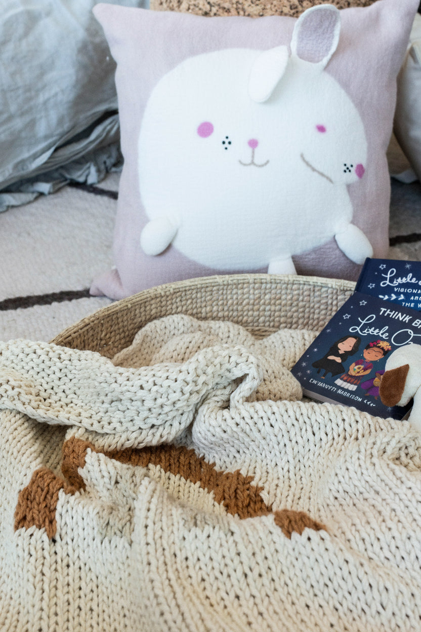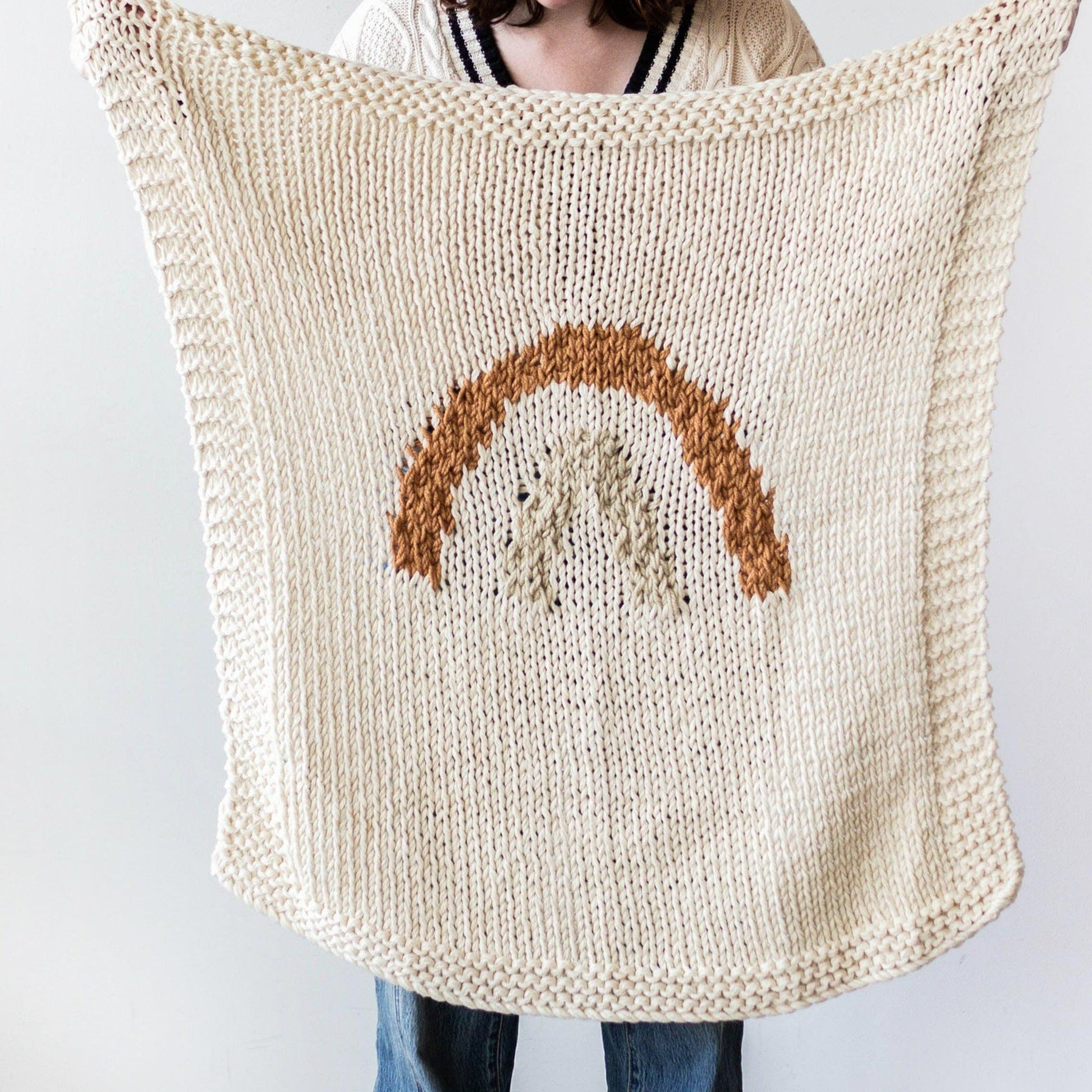 Made from delightfully thick and plush yarns, this fabulous blanket showcase a knitted rainbow decoration that is perfect to decorate a child's crib. Whimsical and cheerful, this blanket is meant to warm the hearts of everyone who cuddles up with it. This blanket is handmade with 100% pure Merino Wool from the heart of the Karoo.