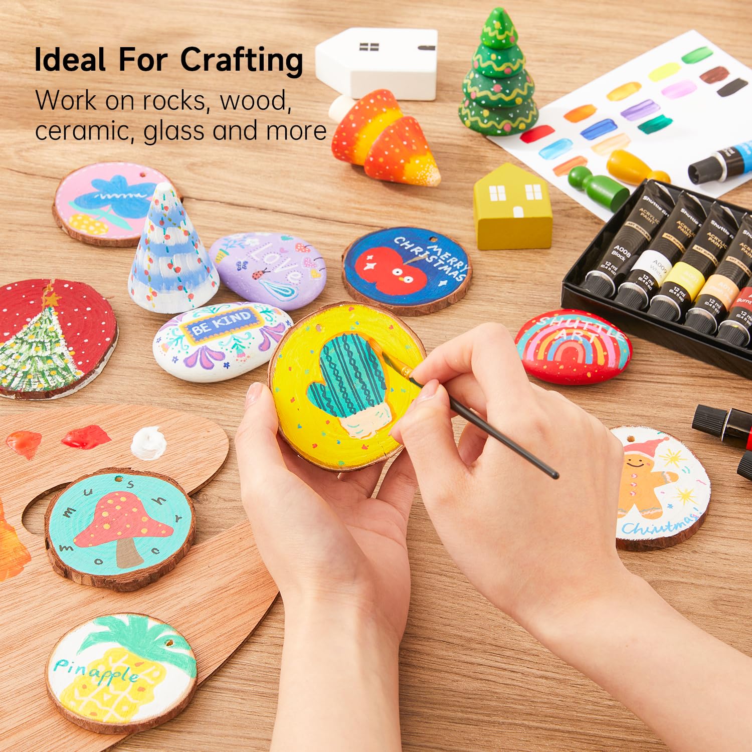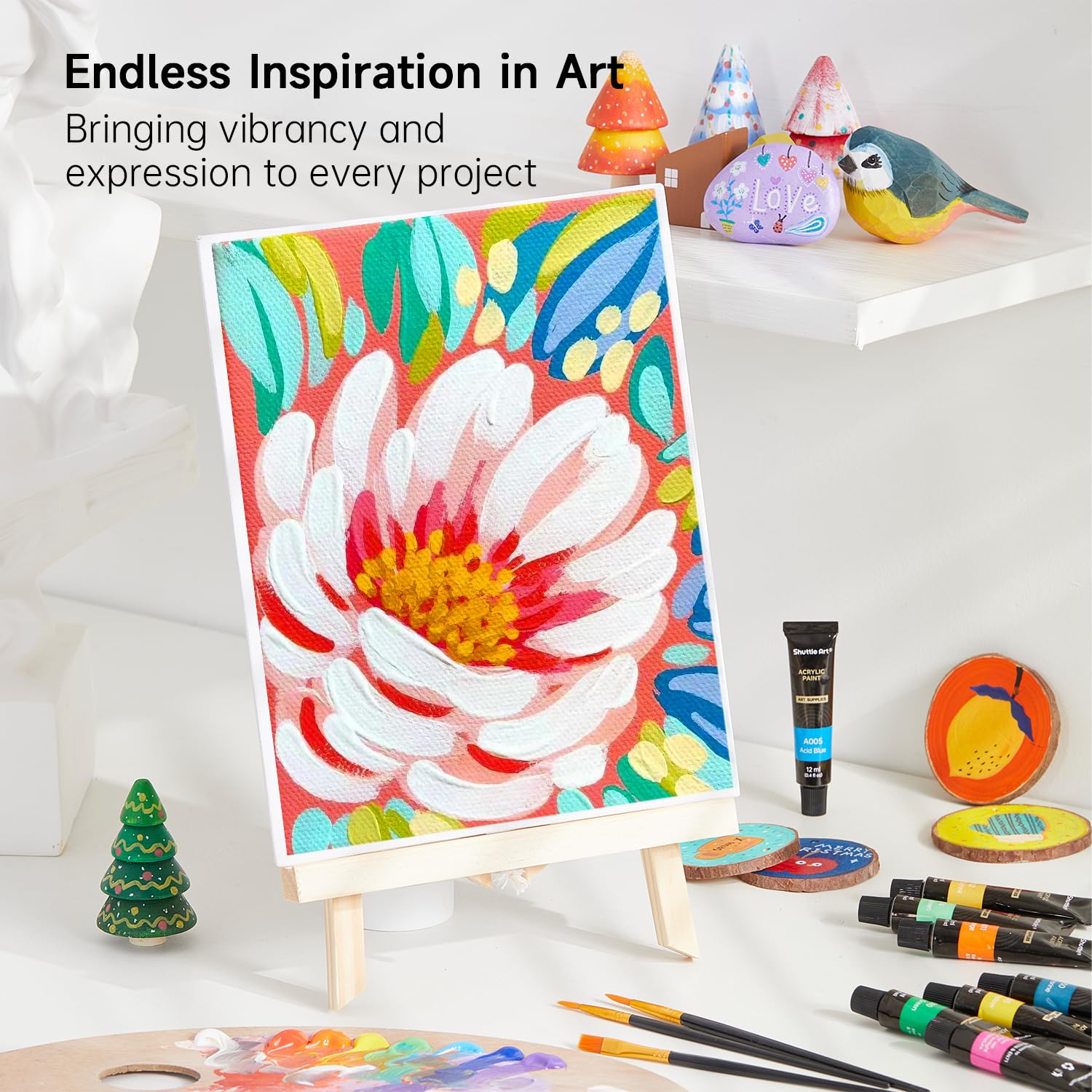 • VIBRANT ACRYLIC PAINTS : Shuttle Art 16 Acrylic Paint Set consists of 16 vibrant assorted colors and with BONUS 3 FREE PAINT BRUSHES. Each tube is filled with 12 ml (0.4 oz) paints with rich pigments that are professional artist quality