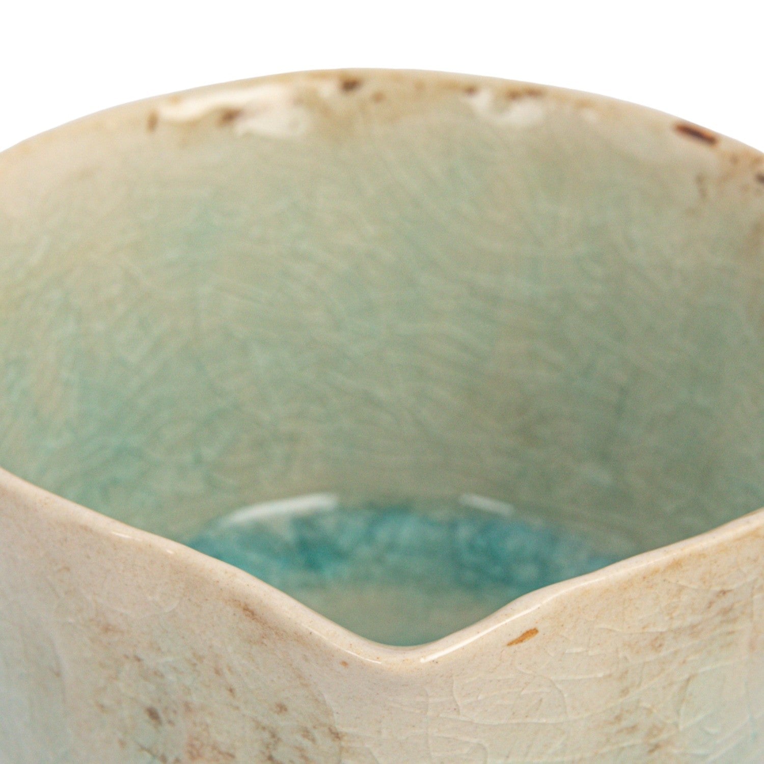 Bring artisan style to your kitchen with this set of four stoneware measuring cups. Finished in a reactive aqua crackle glaze, each piece has a one-of-a-kind look with rustic detailing that complements farmhouse, French country, coastal, boho, or Scandinavian kitchens. Practical yet decorative, these cups double as serving bowls or display accents when not in use.